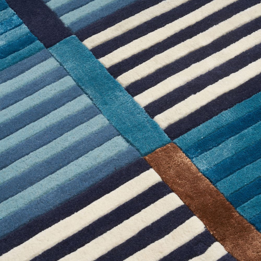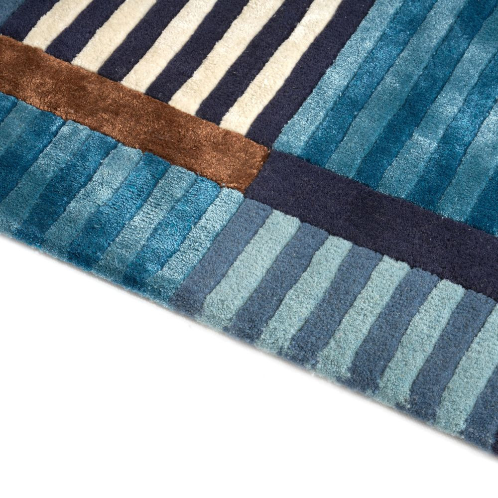 Admiral, kék-barna geometriai mintás, bársonyos felületű, kézi szövésű prémium szőnyeg 160x230 cm