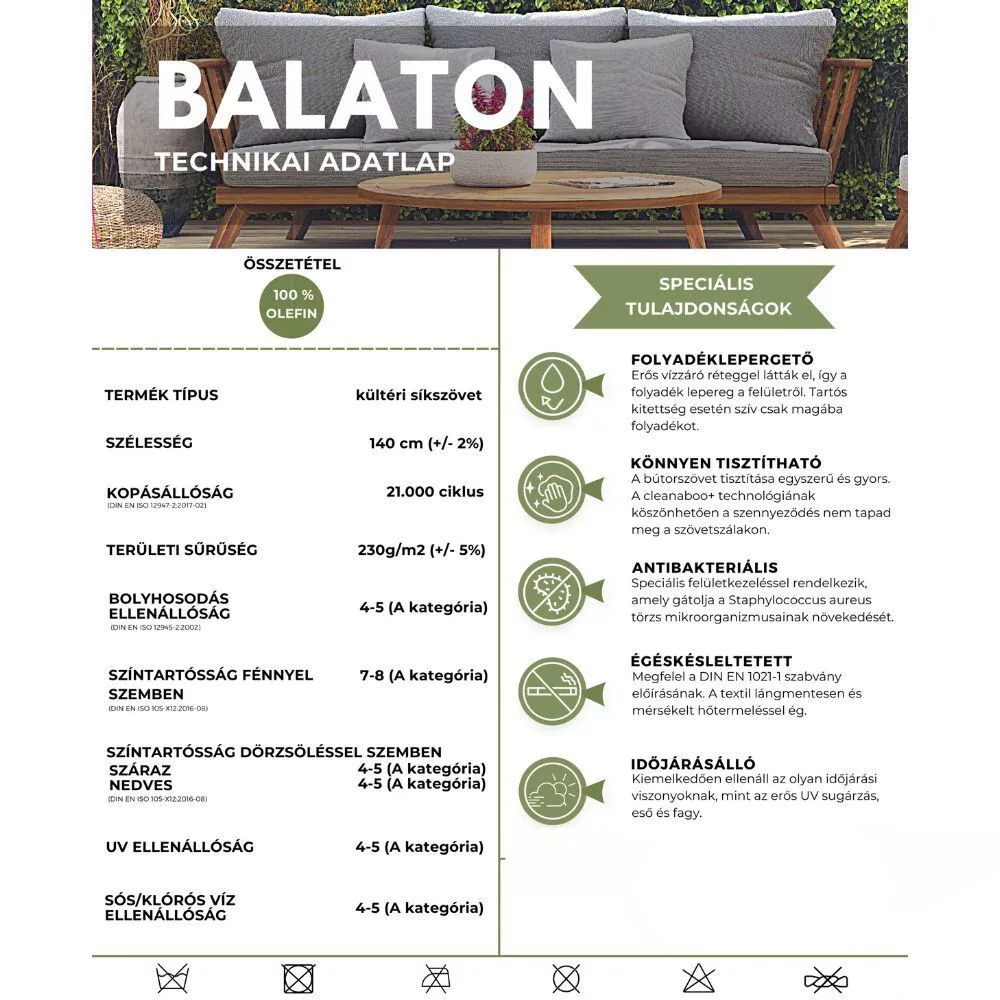 BALATON 7018, vízlepergető, antibakteriális-, UV-álló kültéri bútorszövet