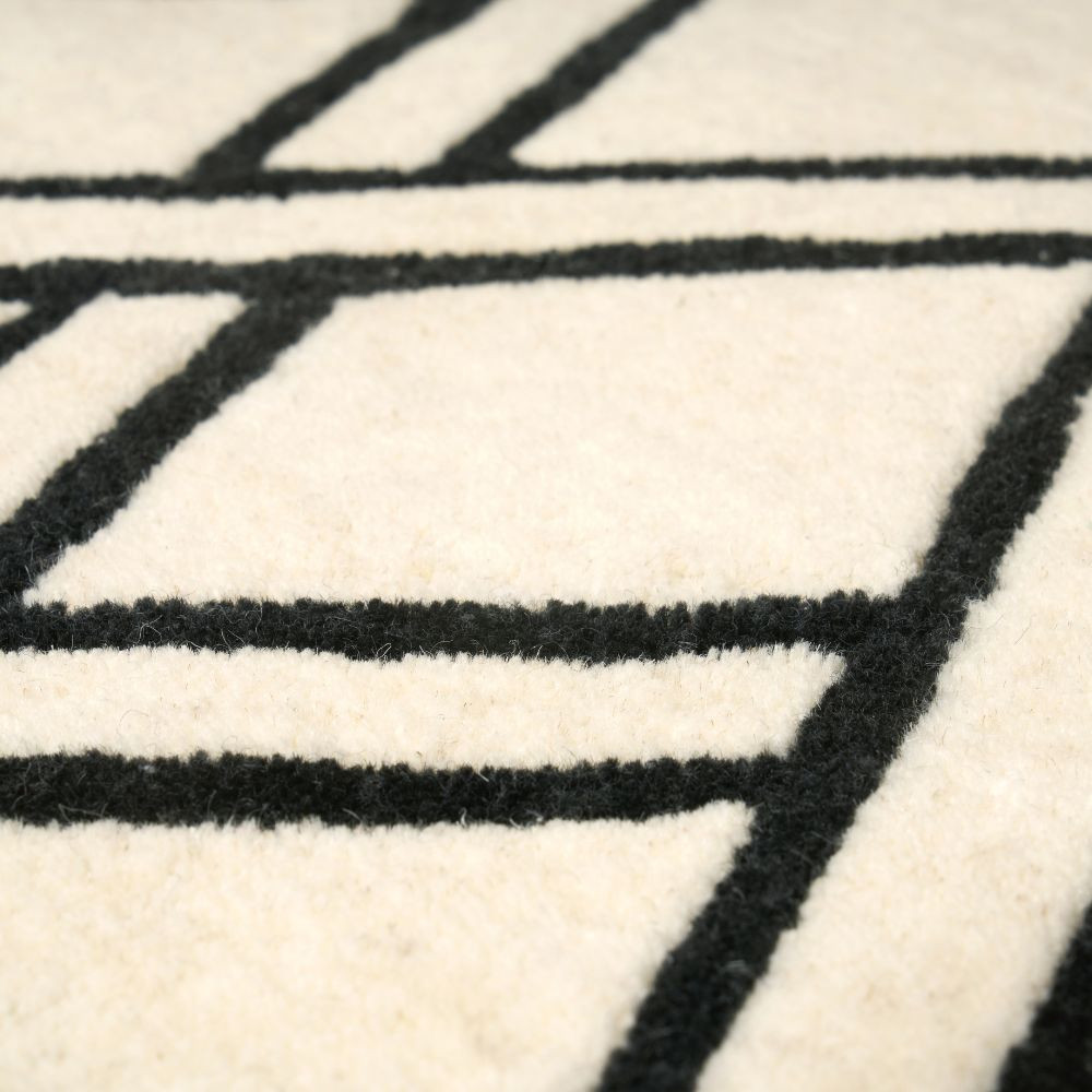 Bemutatjuk a Rug & Roll Brooklyn fekete és bézs geometrikus mintázatú gyapjú szőnyegét. Ez a fényűző és bársonyosan puha szőnyeg eleganciát és kifinomultságot kölcsönöz minden helyiségnek. A kontrasztos fekete és bézs tónusok egyszerű geometriai mintája feltűnő vizuális vonzerővel bír. Brookly szőnyegünk kiváló minőségű anyagokból készült, ez a szőnyeg nemcsak vizuálisan lenyűgöző, hanem tartós és hosszú élettartamú is. Mennyei érzés a lábunk alatt, ahogy kényelmet és meleget biztosít. Akár a nappaliban, akár a hálószobában vagy az étkezőben helyezzük el, ez a szőnyeg azonnal hangulatos szentéllyé varázsolja otthonát.