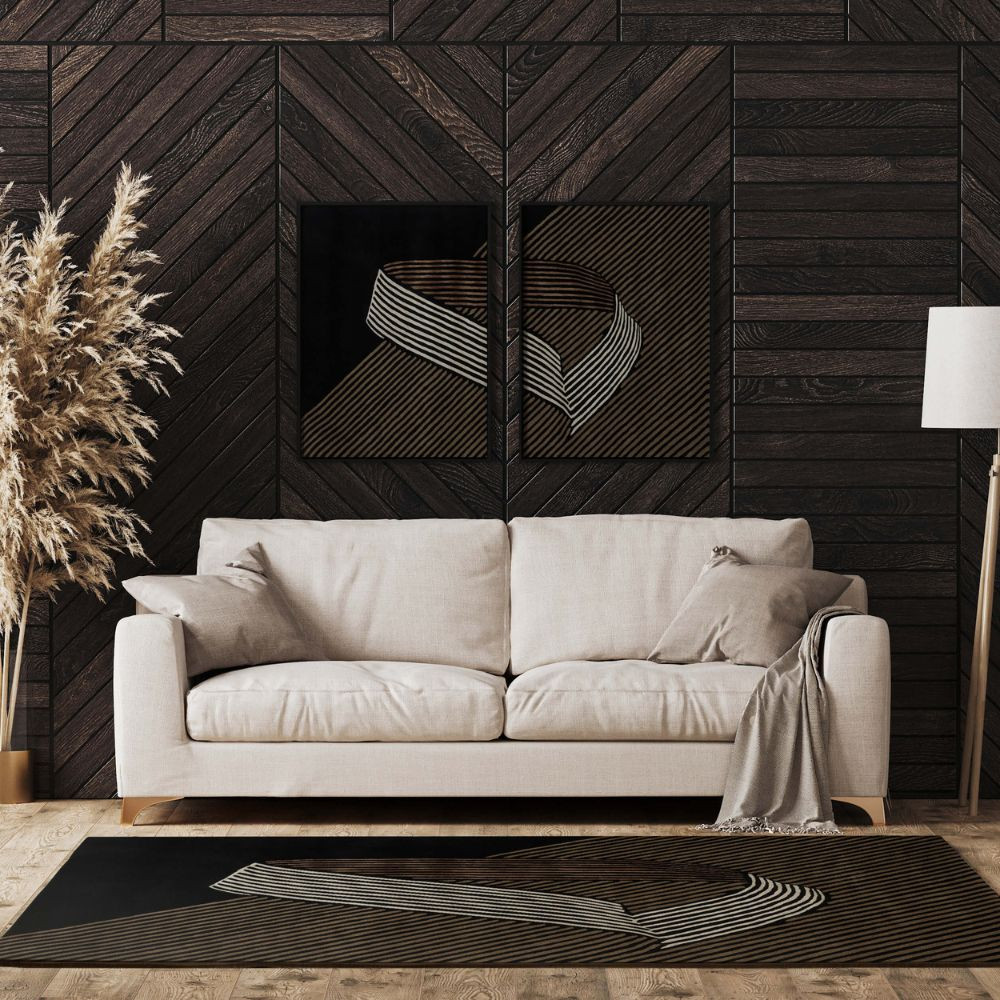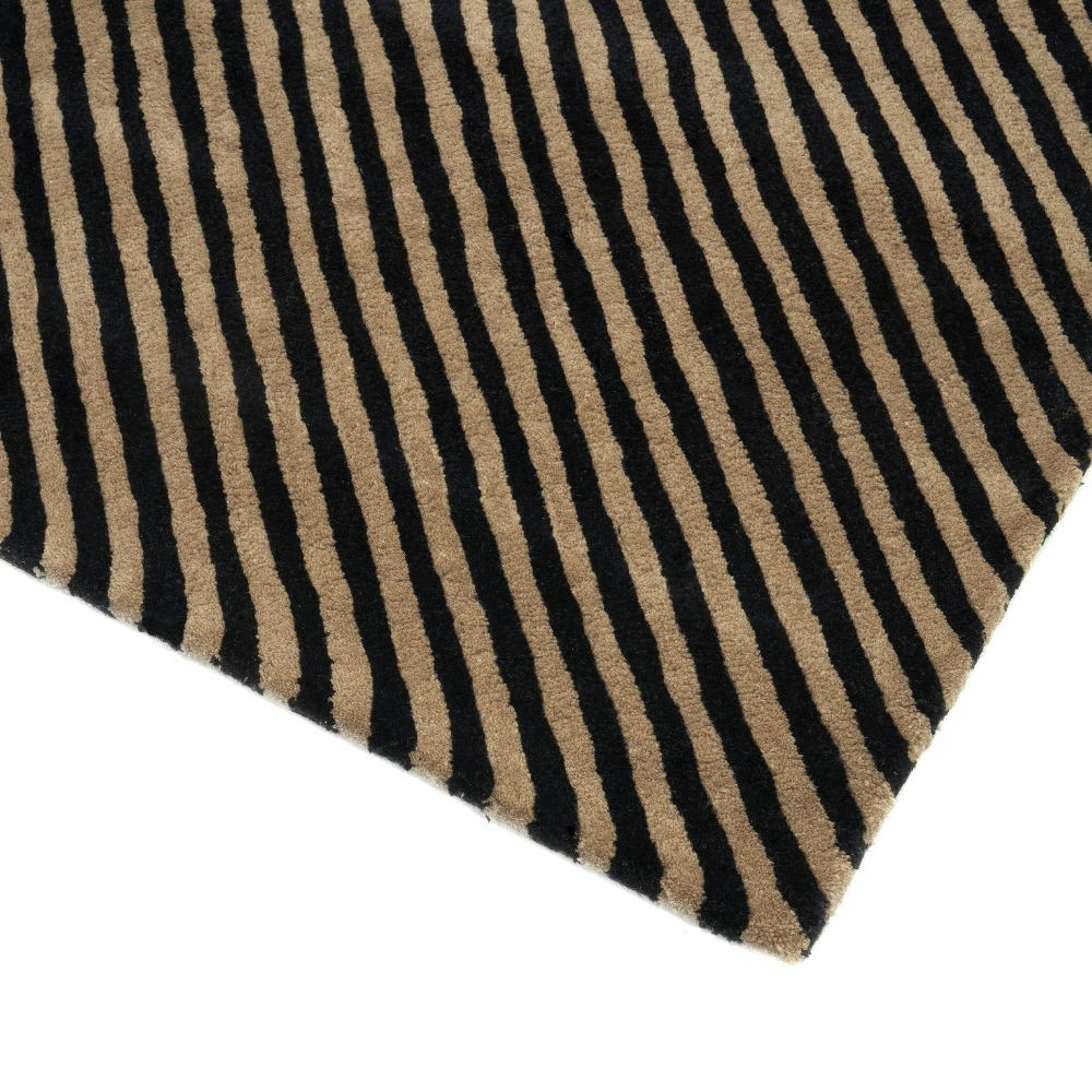 Prémium kollekciónk Emerald Gold szőnyegén előkelő modern vonalrajz látható barna, fekete háttérrel. Harmónikus színek és letisztult formák jellemzik kézi csomózású szőnyegeink legújabb kollekcióját.