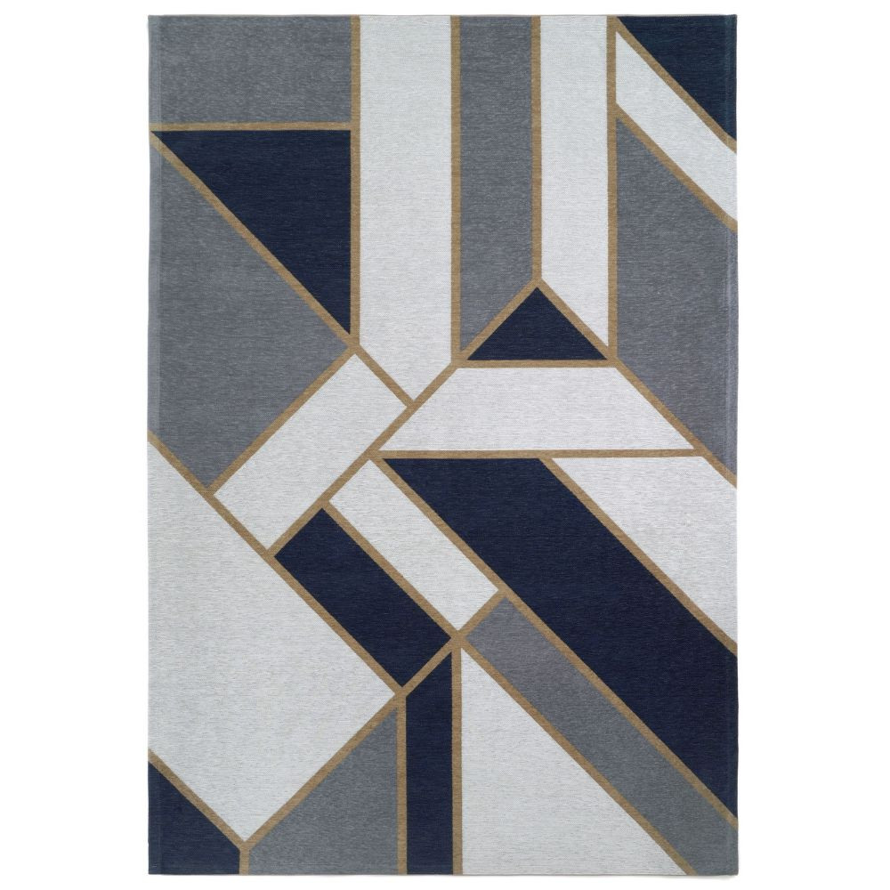 GATSBY Dark Blue, sötétkék, szürke és okker, geometriai mintás szőnyeg szennytaszító bevonattal