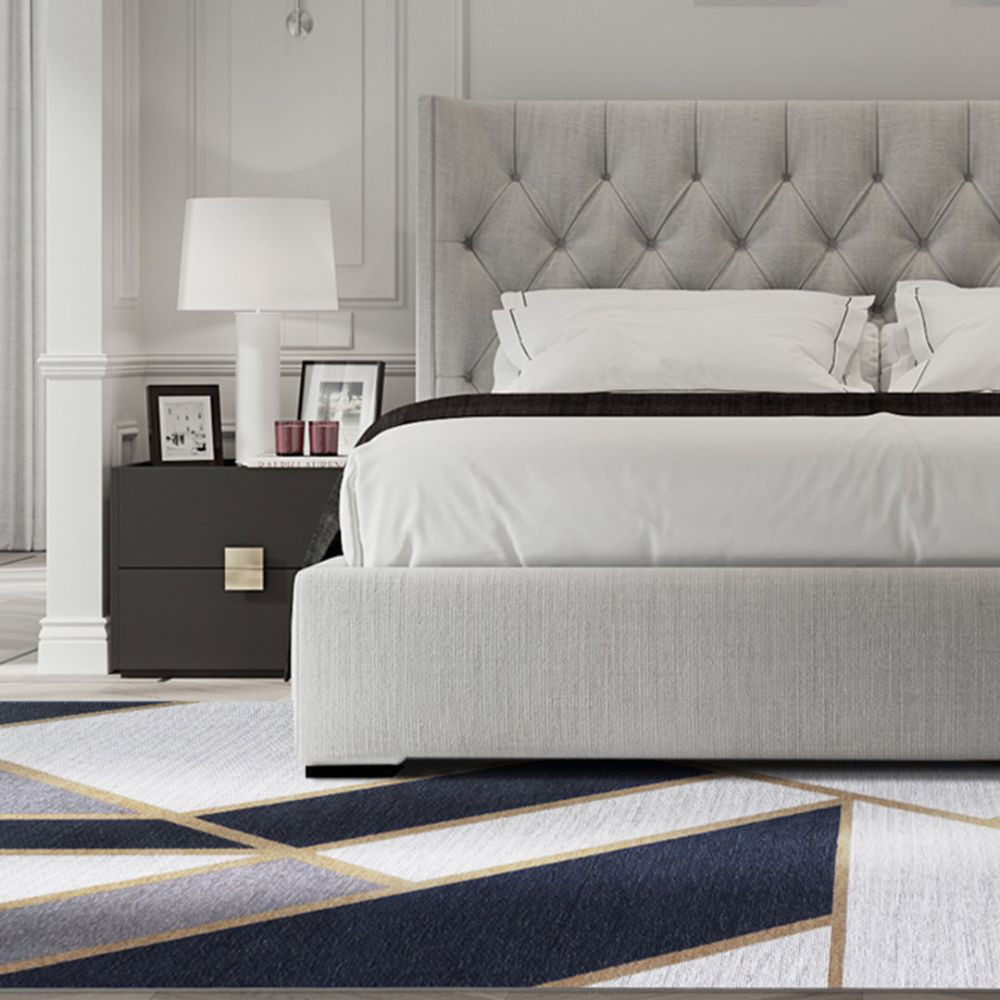 GATSBY Dark Blue, sötétkék, szürke és okker, geometriai mintás szőnyeg szennytaszító bevonattal 200x300 cm