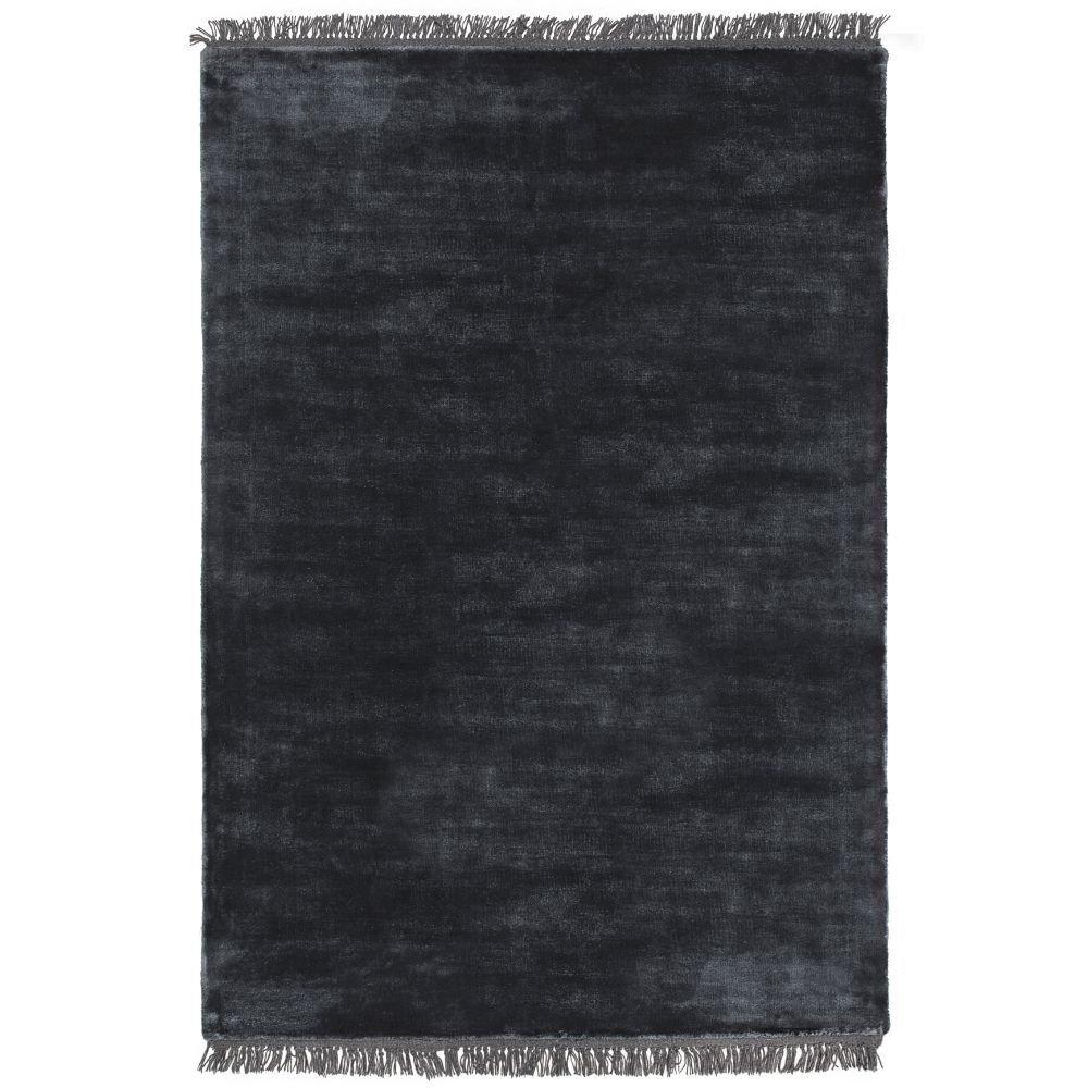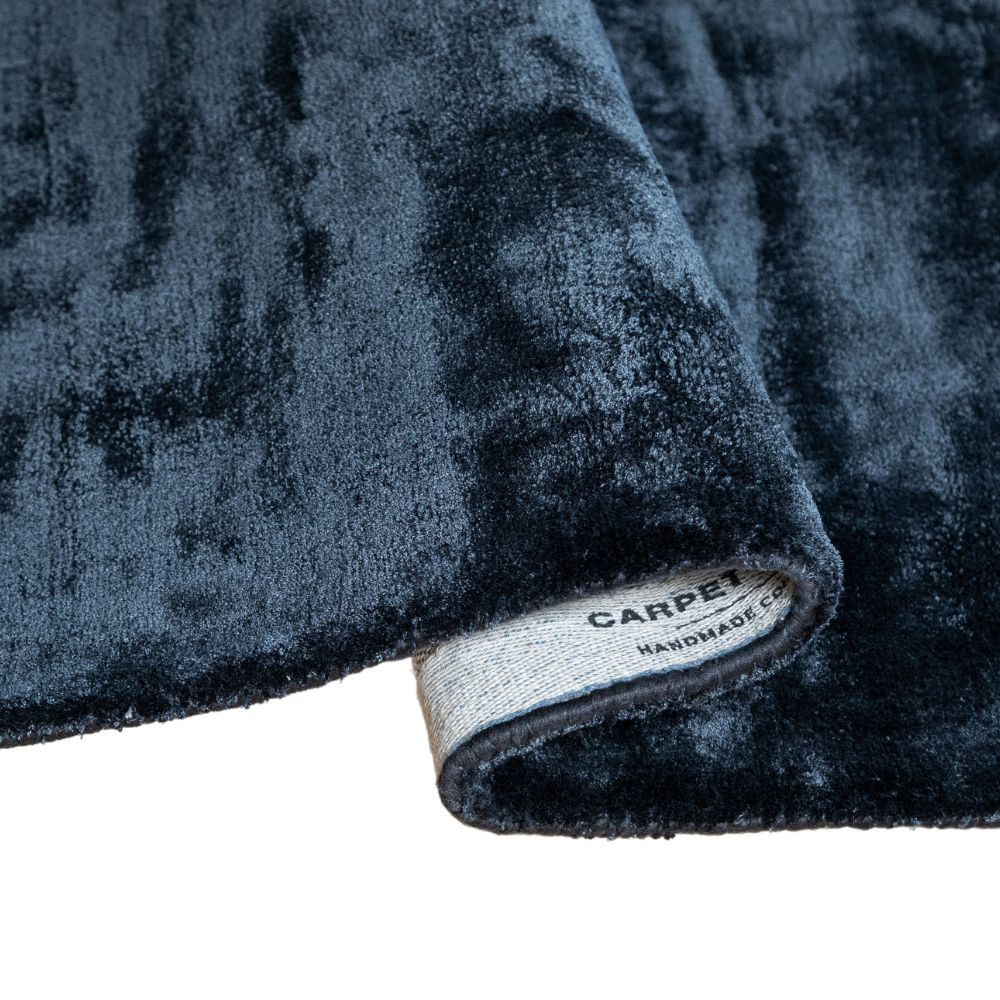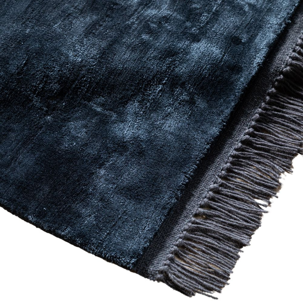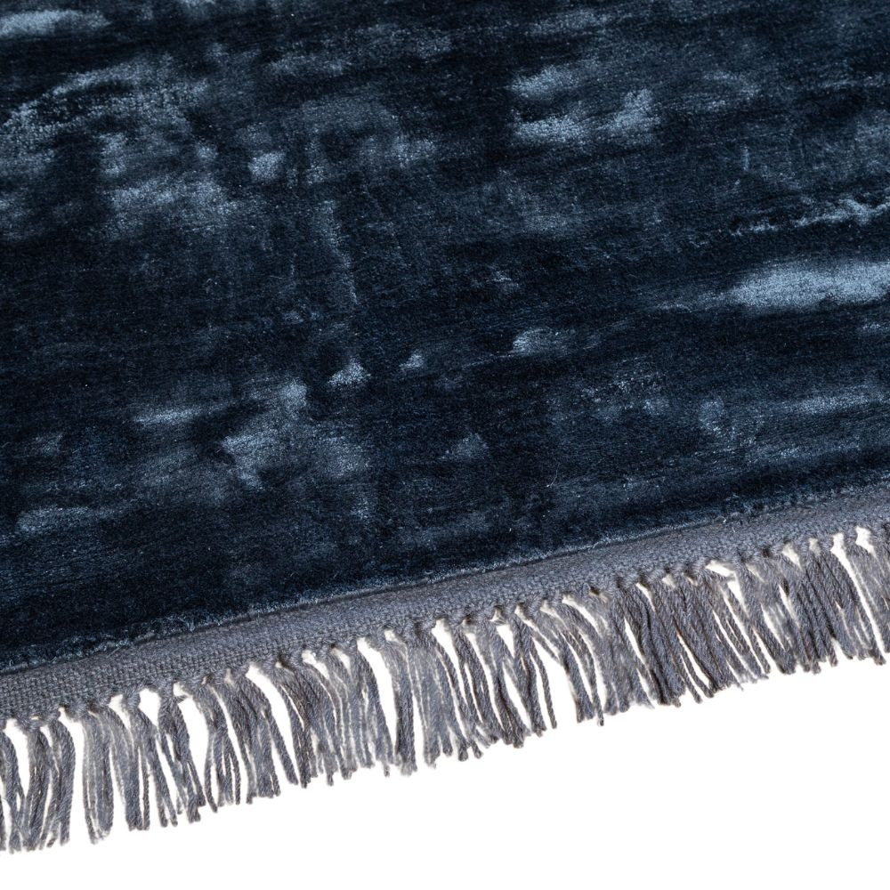 Luna Midnight, sötétkék selymes felületű, kézi csomózású prémium rojtos szőnyeg