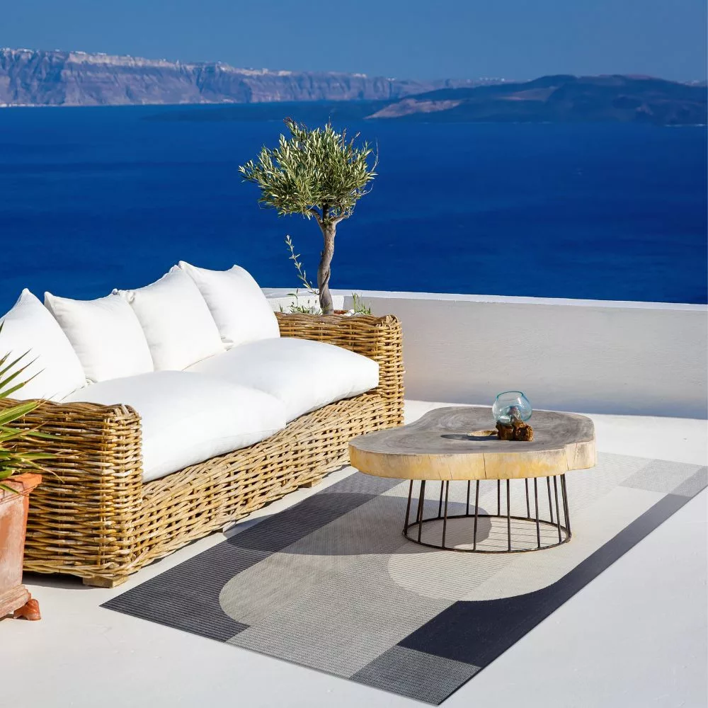MADERA, kültéri UV álló, kékesszürke geometriai mintás szőnyeg