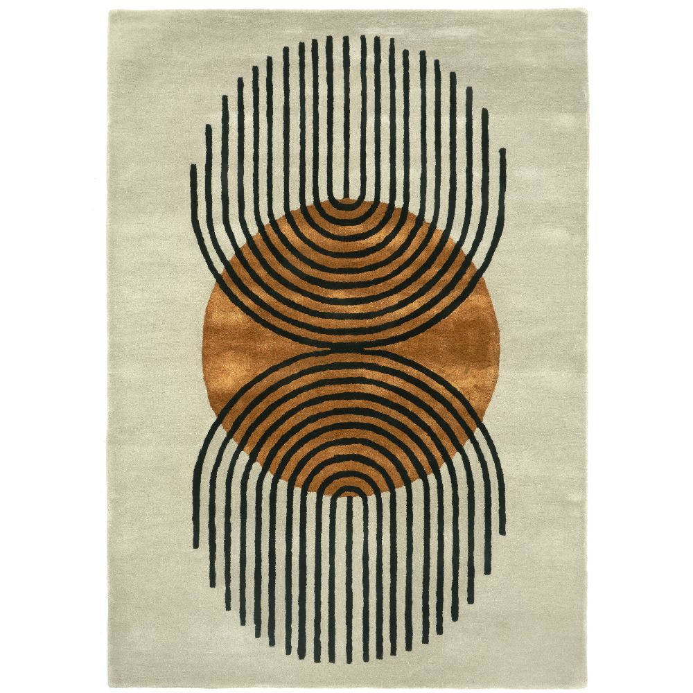 Prémium kollekciónk Stella Coral szőnyegén modern vonalrajz látható bézs háttérrel. Harmónikus színek és letisztult formák jellemzik kézi csomózású szőnyegeink legújabb kollekcióját.