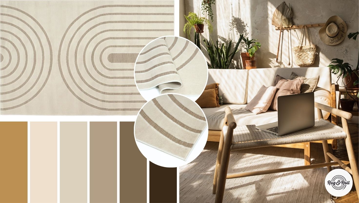 Az ekrü és bézs árnyalatok nyugalmat és természetességet árasztanak, így a szőnyeg tökéletes választás lehet a teraszra, erkélyre, de beltérben is remekül mutat. A minta különlegessége a finoman megjelenő geometriai formákban rejlik, amelyek vizuális ritmust és textúrát adnak a térnek, miközben nem vonja el a figyelmet a helyiség berendezéséről. A szőnyeg árnyalatai kiválóan illeszkednek a skandináv, mediterrán és a természetközeli stílusú otthonok hangulatához.