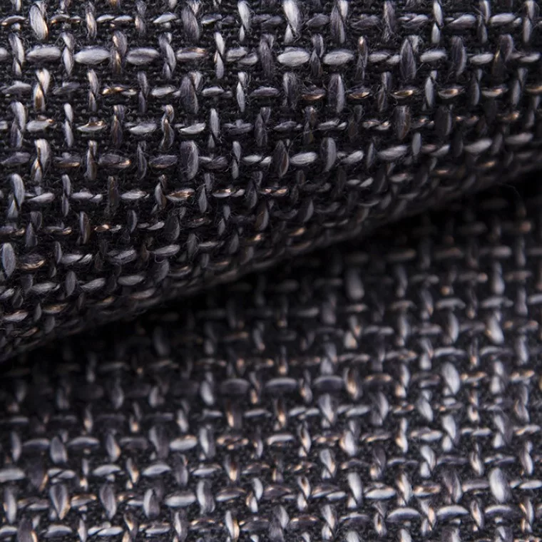 Mutatós textúrájú, jó kopásállóságú, könnyen kezelhető, letisztult modern zsákszövet szürke-fekete fényes szállal átszőtt színben. Alkalmas kanapék, fotelek kárpitozására. Dobd fel régi vagy megunt bútoraidat minőségi bútorszöveteinkkel!