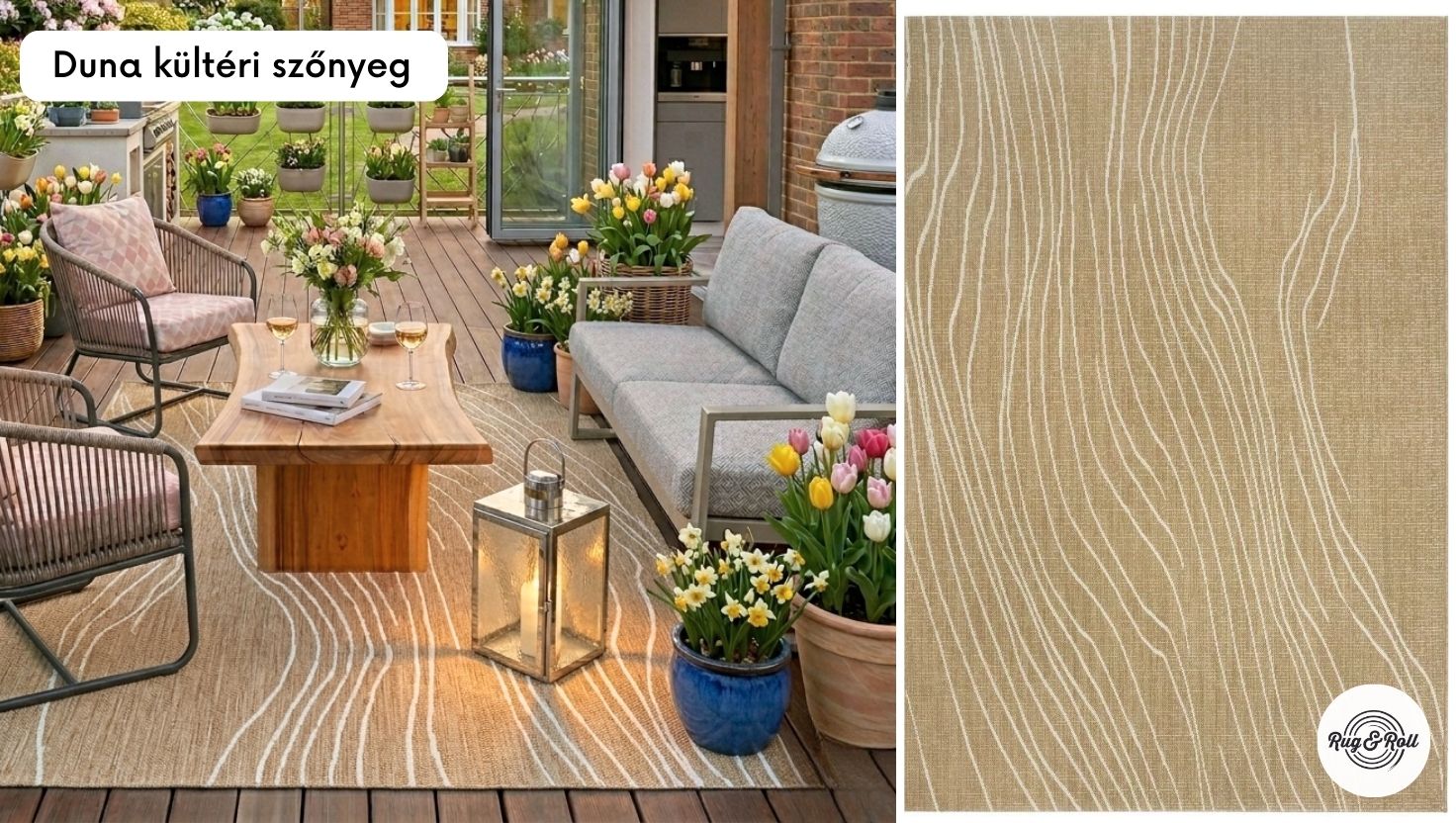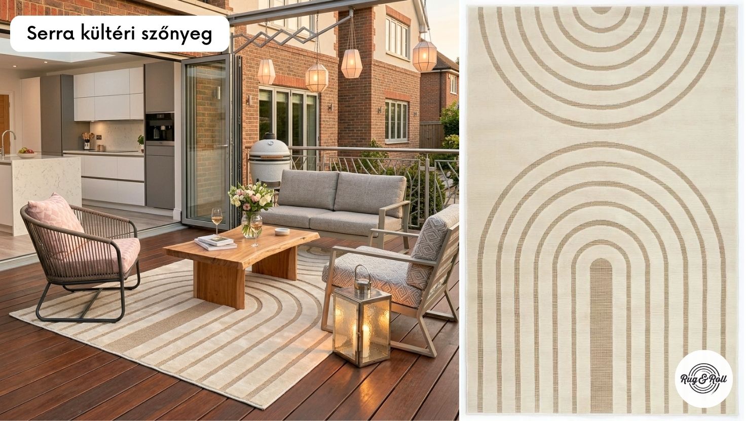 Sokan még mindig úgy gondolnak a teraszra, mint egy „kemény” felületre (kőre, fára vagy betonra), amit kerti bútorokkal pakolunk tele. Pedig a belsőépítészet egyik legfontosabb trükkje kültéren is működik: a szőnyeg öltöztet. Egy jól megválasztott kültéri szőnyeg azonnal kijelöli a pihenőzóna határait, és vizuálisan összehangolja a kültéri bútorokat és dekorációkat is.