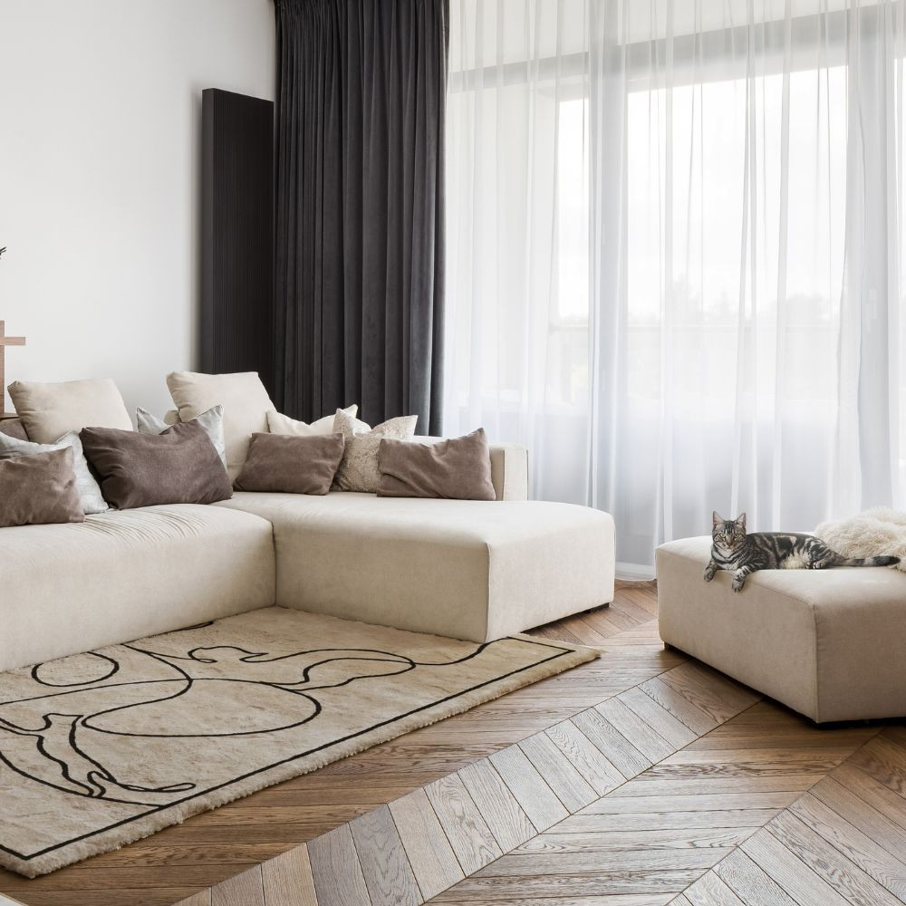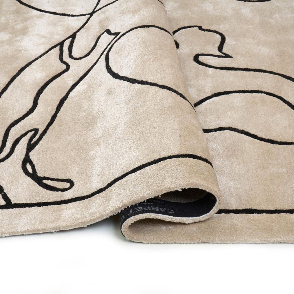 Cats, bézs alapon, fekete macska vonalrajz, kézi csomózású prémium szőnyeg 200 x 300 cm