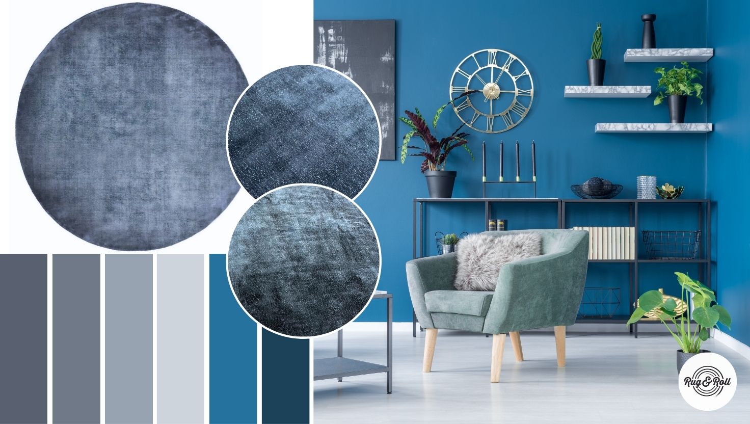 A kör formájú szőnyeg ideális választás lehet nappalik központi elemeként, étkezőasztal alá, vagy akár a hálószobába. A mélykék tónusával jól illeszthető fiús gyerekszobákba is.